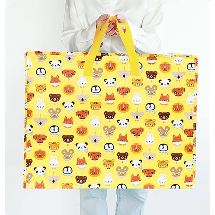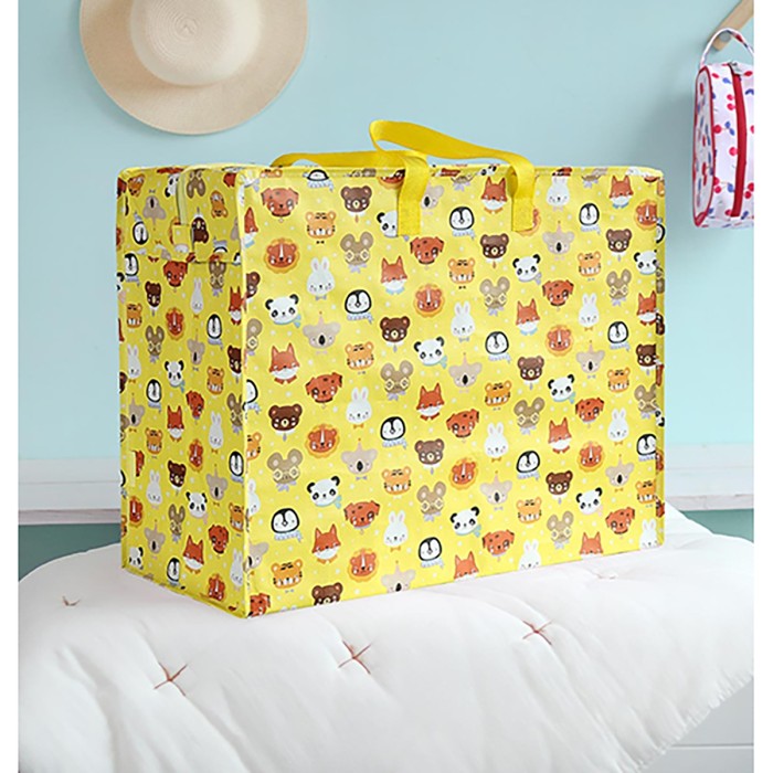 Stor förvaringsväska med gulliga djuransikten från A Little Lovely Company. Väskan har två praktiska handtag och stängs med en dragkedja, den är perfekt för förvaring av kläder, filtar, kuddar, gosedjur, leksaker etc.