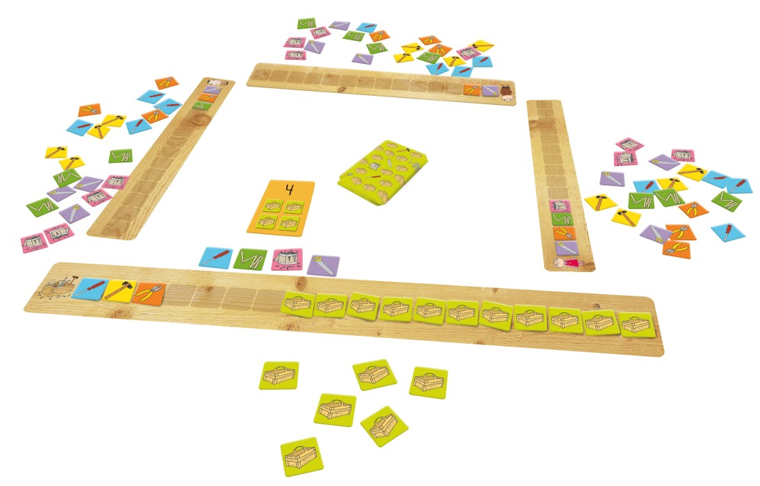 Den som först fyller sin spelbräda med rätt verktyg vinner.