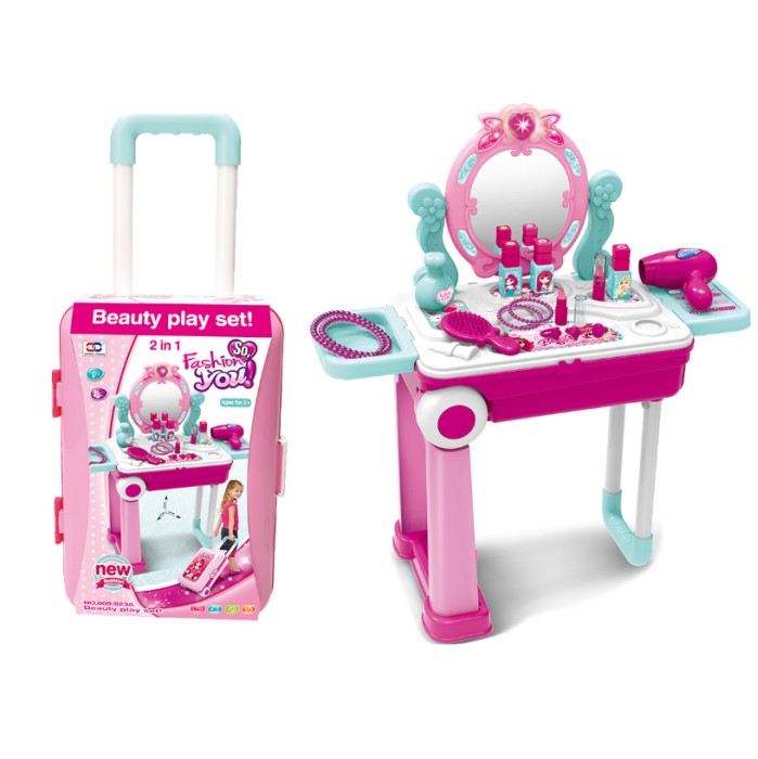 Detta praktiska sminkbord är perfekt för barn som vill utforska smink. Bordet kommer med ett antal fina och roliga tillbehör som gör leken ännu mer underhållande.
