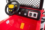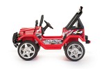 Denna röda Buffalo Hummer är utrustad med två motorer och slitstarka terränghjul i gummi.