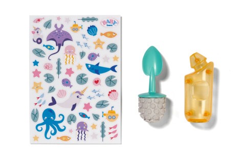 När BABY born Emma sitter på toaletten börjar det låta roliga ljud, och om hon sitter länge nog kommer en toalett-rap! Med den magiska vatteneffekten avslöjas vad hon gjort – stort eller smått. Efteråt är det dags att skölja ut med toalettborsten och toalettrengöringsflaskan. Förvaring för de praktiska tillbehören finns i facken på baksidan.