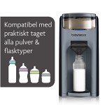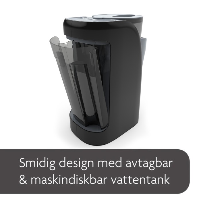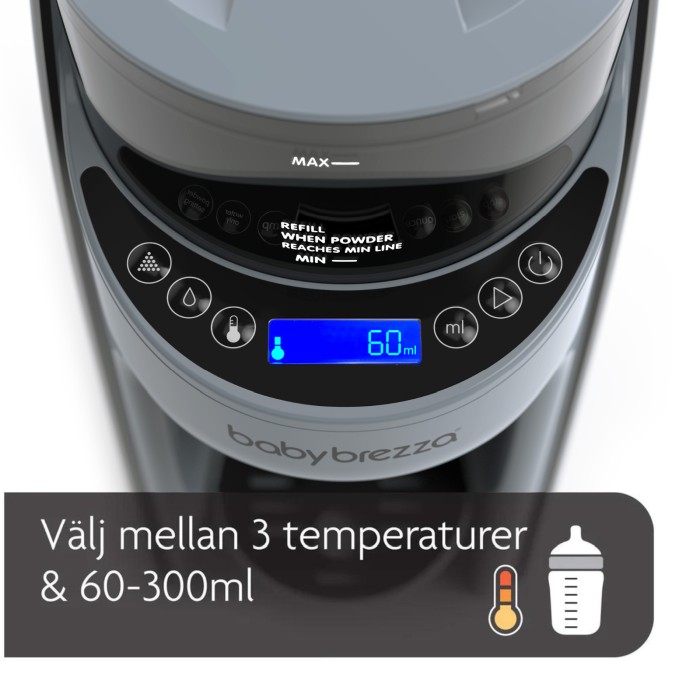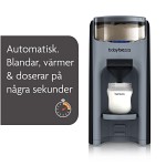Välj genom den digitala kontrollpanelen vilken mängd vatten du vill ha till vällingen, maskinen doserar sedan vatten och pulver, därefter blandar maskinen i ordning vällingen/ersättningen till ditt barn på några få sekunder. Det kan inte bli enklare att göra i ordning en flaska välling!