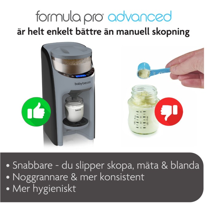 Vällingmaskinen Baby Brezza Formula Pro Advanced är uppföljaren till den tidigare vällingmaskinen från samma märke som hette Formula Pro. Det som är skillnanden mellan dessa två är att denna har den mest avancerade tekniken och utvecklade funktioner.