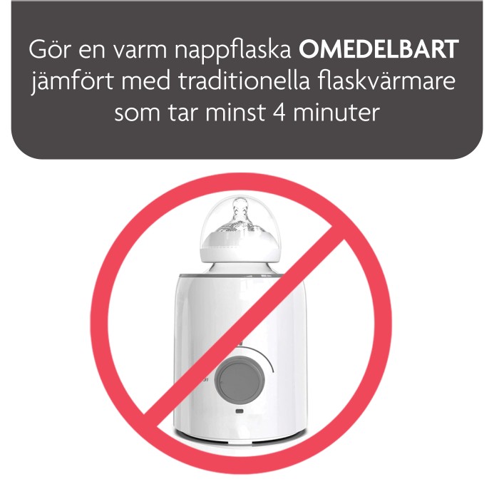 Instant Warmer från Baby Brezza är en smart flaskvärmare. Den rymmer upp till 1,5 liter vatten och du väljer vilken temperatur vattnet ska värmas upp till. Vattnet står alltid redo och när det är dags att förbereda en flaska trycker du bara på knappen. Du får då perfekt tempererat vatten som du bara adderar pulver till och har en färdig flaska på nolltid.