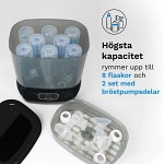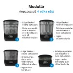 - Rymmer 8 flaskor. Den övre hyllan rymmer även dina tillbehör och nappar