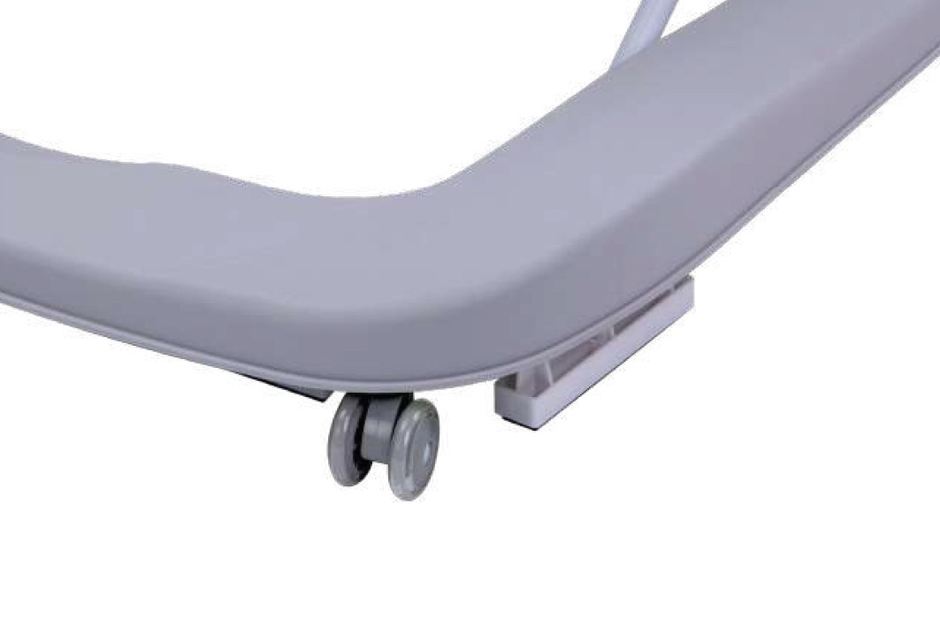 Hastigheten på hjulen kan justeras för att matcha barnets förmåga och självförtroende. Gåstolens hjul kan roteras 360 grader, vilket gör det lätt för barnet att gå åt olika håll. Hjulen är även utrustad med bromsklossar för extra säkerhet vid trappor