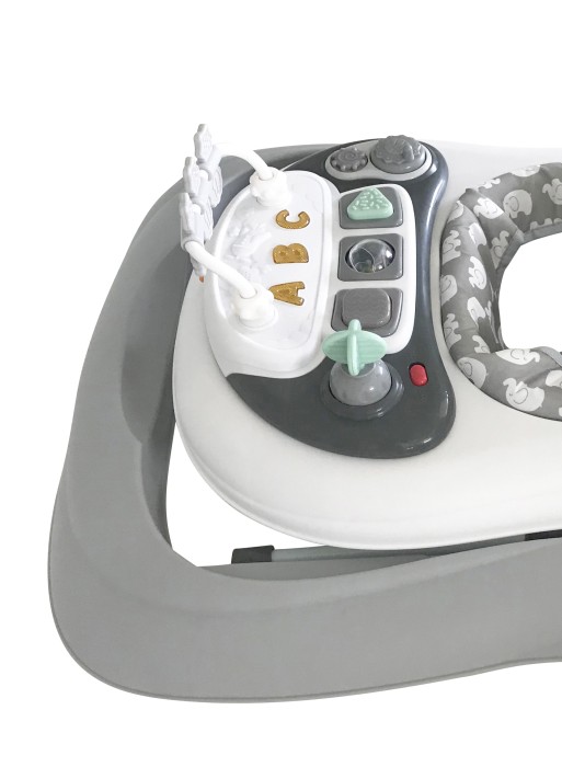 Höjden för sitsen kan justeras i tre lägen för att passa barnets benlängd och kan enkelt fällas ihop för förvaring. Lekbordet är avtagbart och lätt att rengöra.