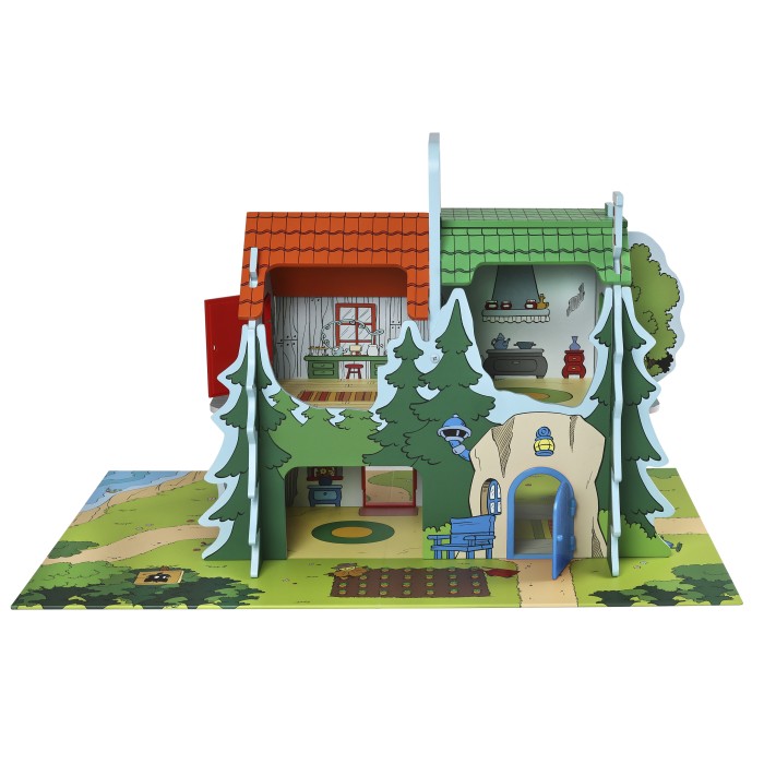Låt barnen utforska Bamsebyn med robusta trähus för Bamse, Lille Skutt, Skalman och Farmor. Öppna dörrar, lek inne och ute på lekplattan, följ stigen upp till Farmors hus eller upptäck Skalman’s uppfinningar. Perfekt för kreativ lek och egna berättelser. Med praktiskt handtag för enkel transport. Passande Bamsefigurer säljs separat för ännu mer lek.