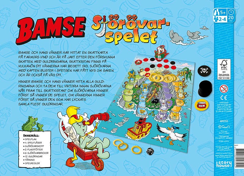 Bamse Sjörövarspelet är ett spännande äventyr där barnen får följa med Bamse och hans vänner på jakt efter en skattkarta de har hittat på Farmors vind.