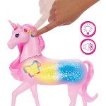 Lys upp leken med Barbie Sparkle Lights enhörning. Barn kan upptäcka 20 olika kombinationer av ljus och ljud och leka på många olika sätt.