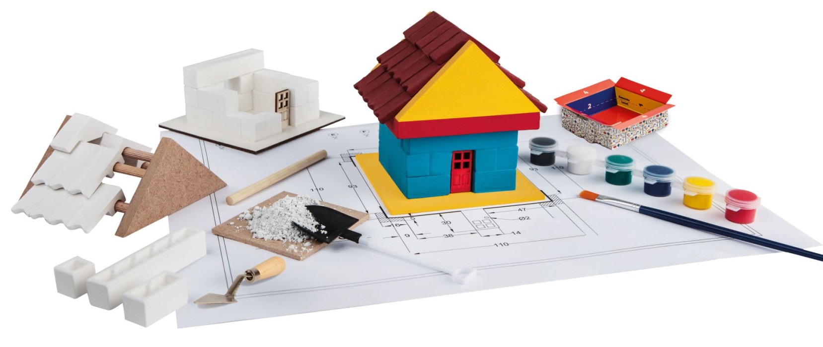 Upplev känslan av att vara en riktig murare och byggare med denna spännande byggsats. Här får du allt du behöver för att skapa och måla ditt första Bildits hus helt själv. Byggsatsen innehåller alla material och verktyg för ett roligt och lärorikt projekt.