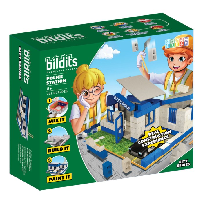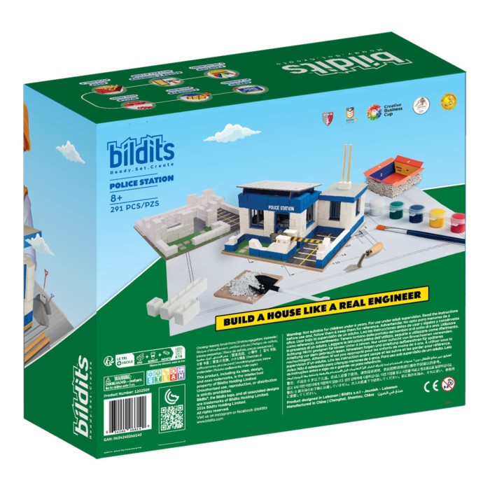 Känn dig som en riktig murare och byggare när du skapar din egen polisstation med denna kompletta byggsats. Den innehåller allt du behöver för att bygga och måla ett detaljerat hus från början, inklusive alla material och verktyg. Passar barn från 8 år och uppåt.