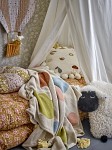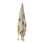 Mjuk och skön filt i återvunnen bomull från Bloomingville. Dess lekfulla mönster av prickar i olika storlekar och härliga färger ger en lekfull touch till barnrummet.