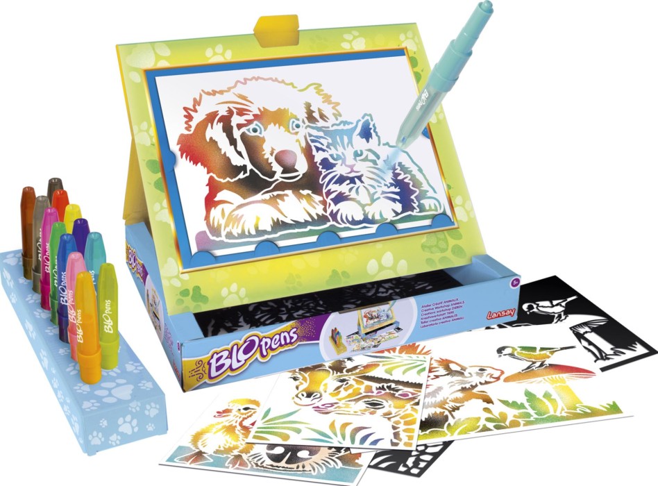 Blåspennorna gör det enkelt att skapa fantasifulla konstverk – bara blås genom pennan så sprider sig färgen över mallen och avslöjar söta djurmotiv. Ett pyssel som passar perfekt för alla kreativa barn.