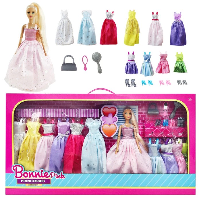 Bonnie Pink Docka Princess Set – Docka med 12 Klänningar och Tillbehör