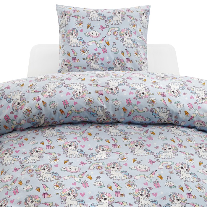 Borganäs Påslakanset 150x210 cm Enhörning (Blå)