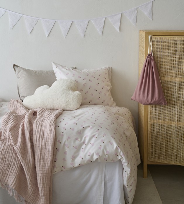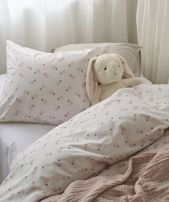 Ge barnrummet en färgglad och lekfull känsla med Borganäs bäddset med päronmönster.