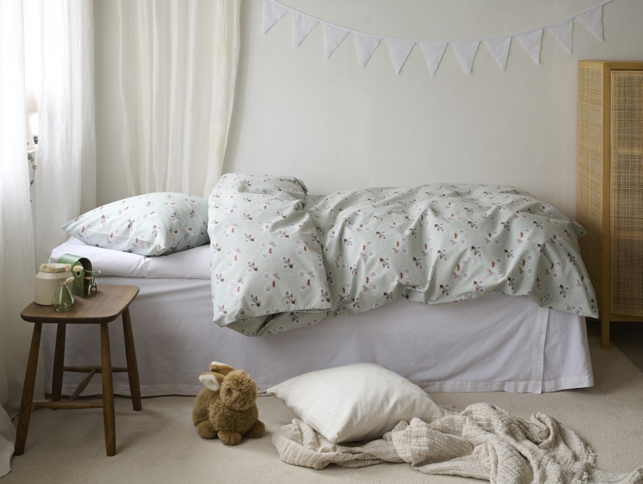 Ge barnrummet en lekfull och stilren touch med Borganäs bäddset med cykelmönster. Setet består av ett påslakan (150x210 cm) och ett örngott (50x60 cm), tillverkat i 100% mjuk bomull som ger en skön nattsömn. Perfekt för barn som älskar färgglada och roliga mönster, samtidigt som det är slitstarkt och lätt att sköta. Detta bäddset i bomull är både praktiskt och dekorativt för barnets sovrum.