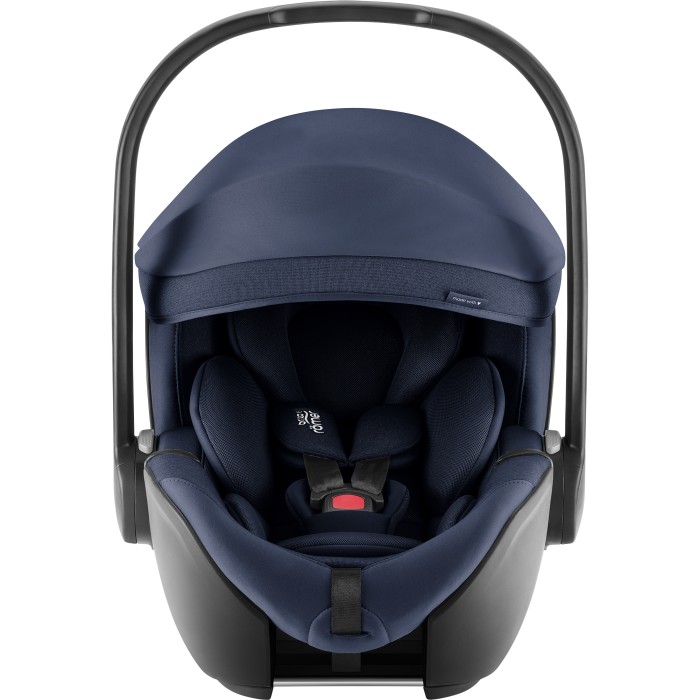 BABY-SAFE PRO är Britax lättaste och mest innovativa babyskydd hittills, med Ergo Recline för en planare position som både gör resan bekvämare och säkrare. Här i den blåa färgen Night Blue från Style-kollektionen.