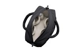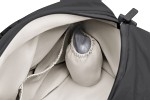 Den breda öppningen tillsammans med tre ytterfickor och fem innerfickor gör det lätt att hålla struktur. Väskan kan bäras bekvämt över axeln eller fästas direkt på vagnen med hjälp av krokarna.
