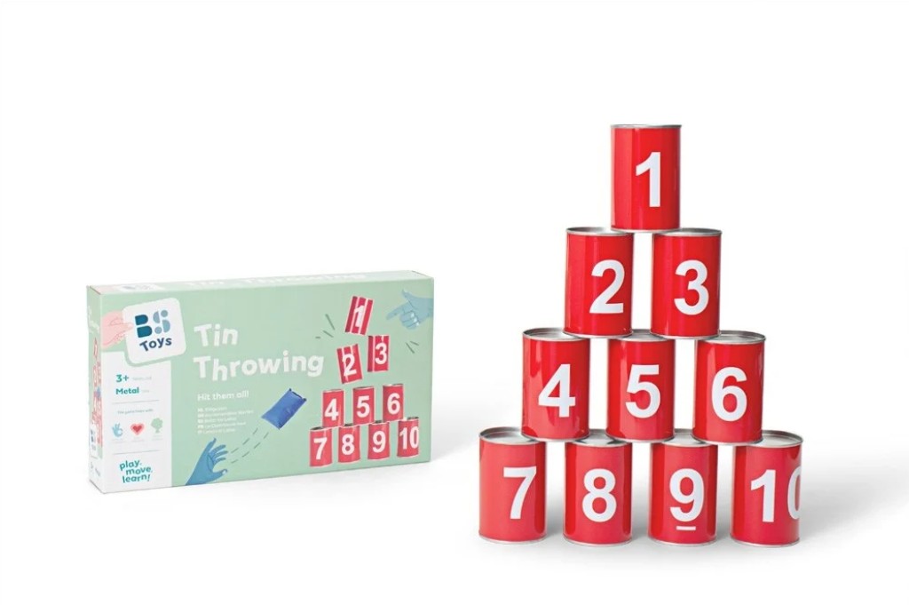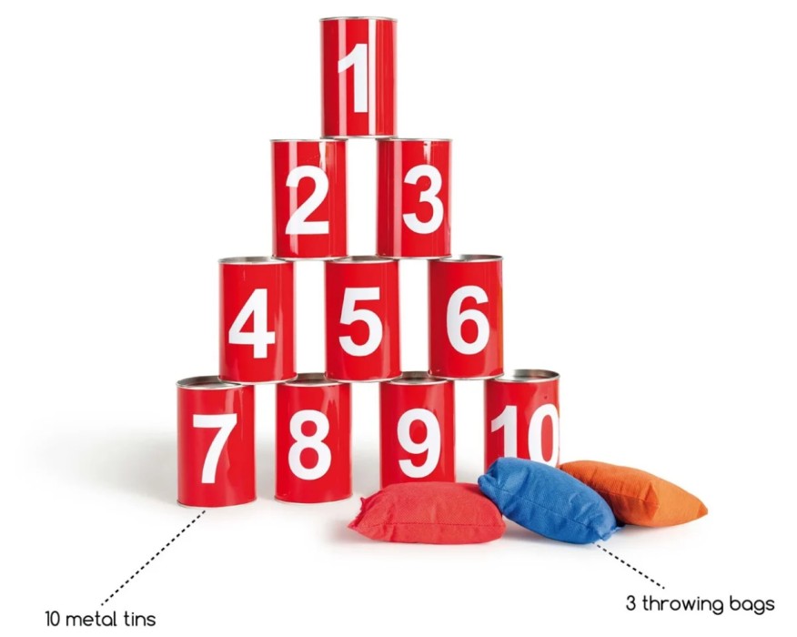 Klassisk plåtburkkastning i ny, tålig tappning – perfekt för festen, kalaset eller familjeduellen i trädgården! Stapla upp de 10 metallburkarna, ta sikte och kasta med de medföljande kastpåsarna. Hur många kan du fälla med ett enda kast?
