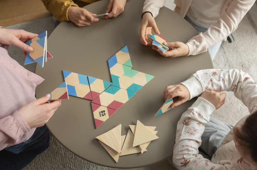 Ett kreativt och klurigt spel där du tävlar om att bli först med att placera ut alla dina brickor. Matcha färgerna på trianglarna och skapa vackra mönster och former direkt på bordet – men planera smart, det gäller att tänka både taktiskt och visuellt!