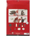 Setet innehåller utskurna delar i grå, röd och råvit filt, samt 2 svarta träpärlor och polyesterfyllning för att ge musen liv. Med en pappbit för paket, en stickad halsduk och tråd, får du allt du behöver för att skapa ditt eget mästerverk.
