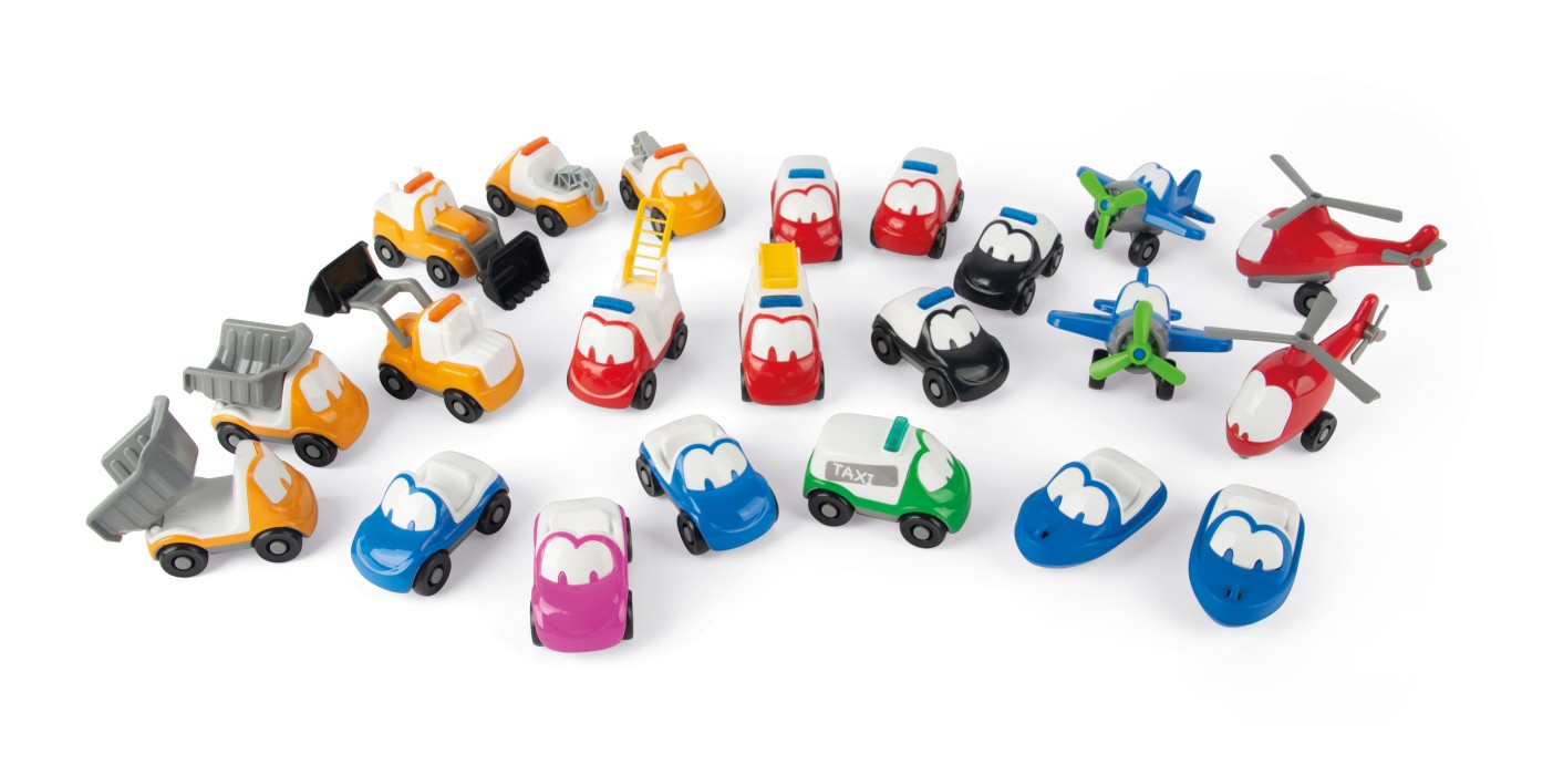 Setet främjar finmotorik, öga-hand-koordination och socialt samspel genom gemensam lek. Alla fordon är Svanenmärkta, tillverkade i Danmark i slitstarka material fria från skadliga ämnen – och kan diskas i diskmaskin!