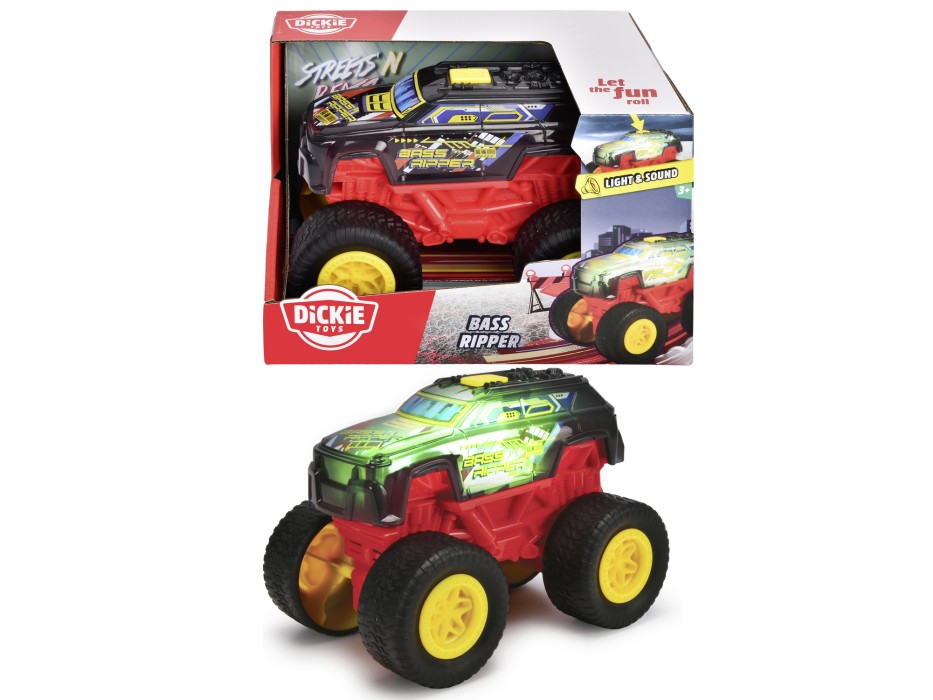 Dickie Toys Bass Ripper – Pull-back bil med ljus, ljud & gummidäck (17 cm)