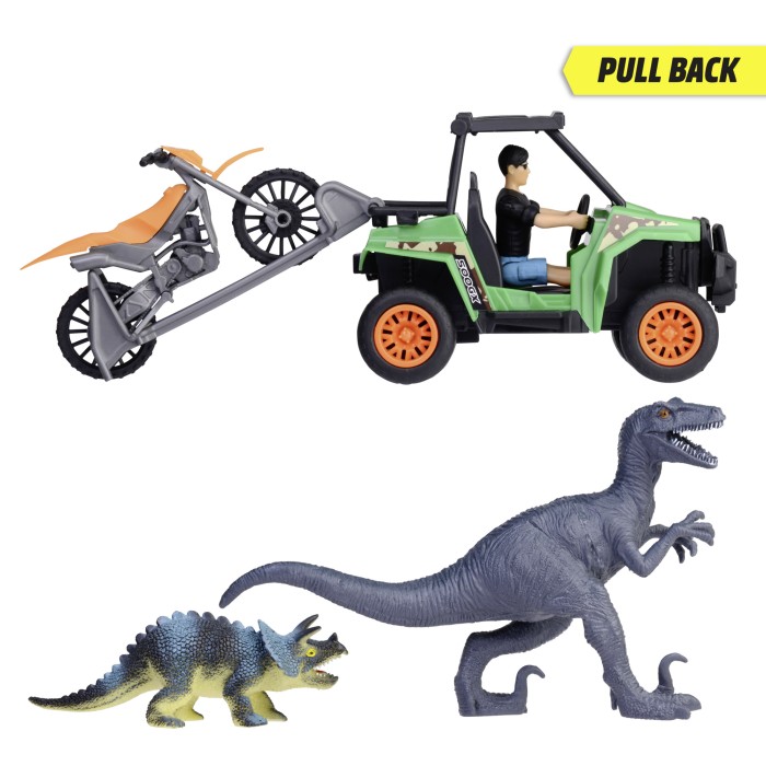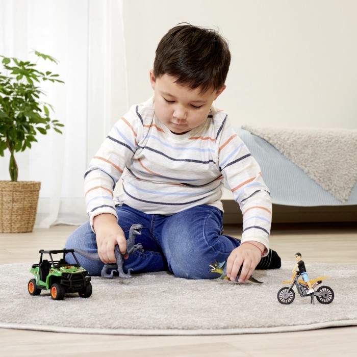 Dickie Toys Dinosaurie Lekset – UTV Fyrhjuling, Motorcross & Dinosaurier (1:24)