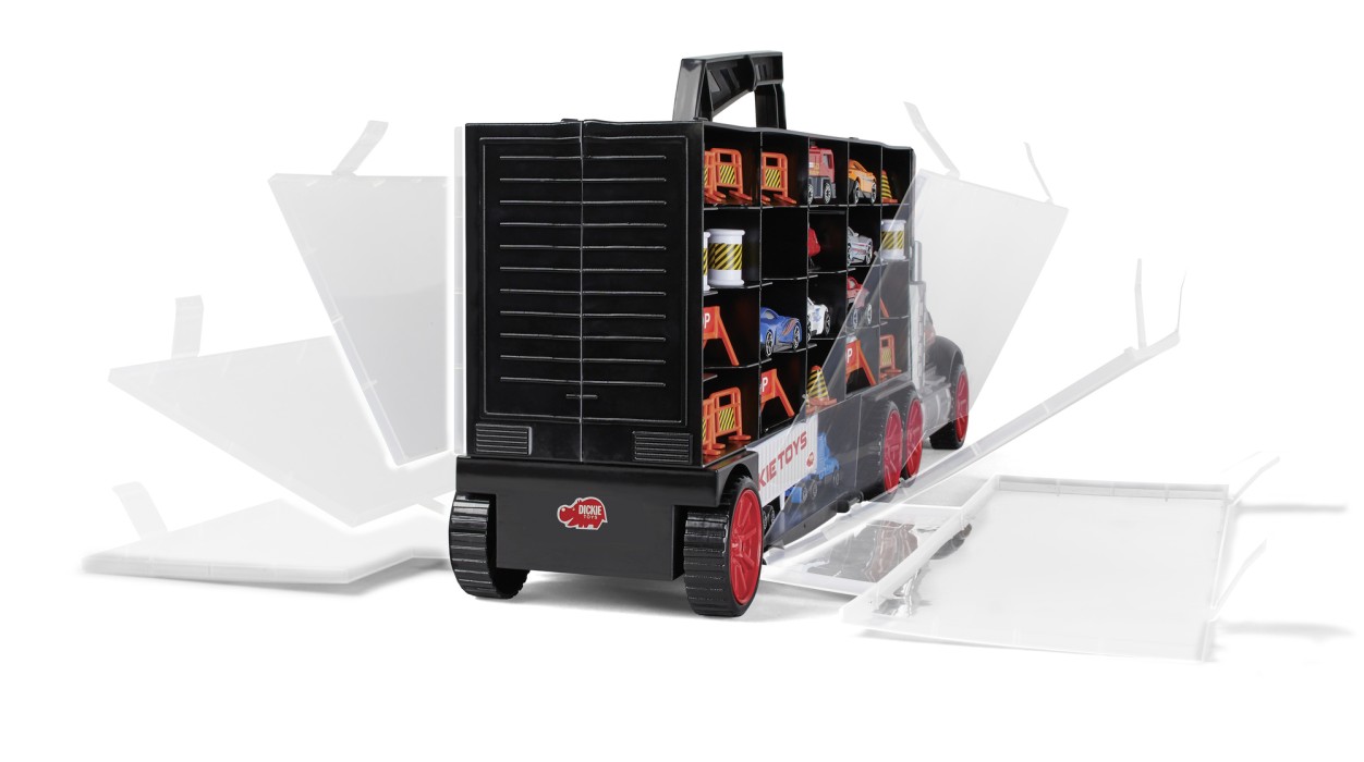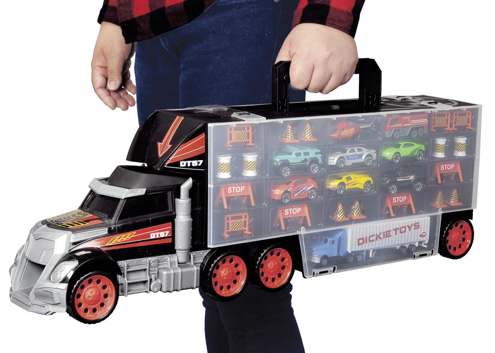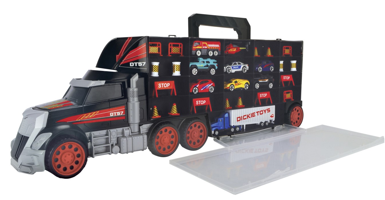 Dickie Toys Förvaringslastbil – 62 cm med 9 metallfordon & tillbehör