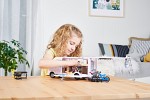 Uppskattad av barnen är förmågan att fälla ner sidopanelen, öppna taket och takfönstret. Leksakshusbilen hjälper till att träna finmotorik och inspirera att äga sin egen husbil!