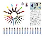 Innehåller: 12 mini färgpennor, 6 tuschpennor, 24 kritor, suddgummi, 2 mini pennor, vässare, 4 posters och 1 klistermärkesark.