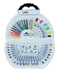 Inuti väskan hittar du allt som behövs för att komma igång med skapandet – färgpennor, tuschpennor, kritor, posters och mycket mer.