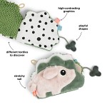 Upptäck vem som gömmer sig bakom buskarna. Fästs enkelt på babygym eller vagn med elastisk ögla. Färgglada kontraster för visuell stimulans