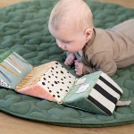 Den har spegel, mjuka texturer och kontrastfärger som stimulerar barnets syn, känsel och nyfikenhet på ett lekfullt sätt.