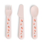 Bestick med gulligt mönster från Done by Deer, säkra och ergonomiska för små händer!