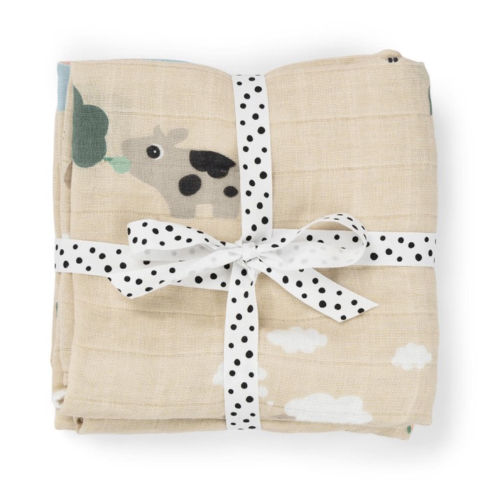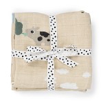 De mjuka filtarna har dubbla lager och är erfekta vid amning, rapning eller blöjbyten. Tillverkade i dubbellagrad muslin som är OEKO-TEX®-certifierad, andningsbar och skonsam mot känslig babyhud. Dekorerade med lekfulla motiv av Croco, Elphee och Nozo i en söt puderrosa nyans.