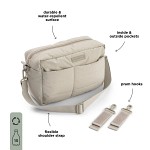 Denna slitstarka och vattenavvisande skötväska är perfekt för föräldrar på språng. Den har en flexibel axelrem och fästen för barnvagn, ett stort huvudfack med tre innerfickor och två ytterfickor för enkel organisering. Varje väska tillverkas av återvunnen polyester motsvarande 15 PET-flaskor, vilket gör den både praktisk och miljövänlig.