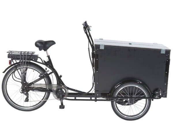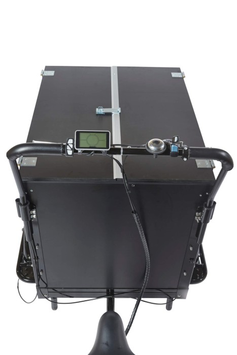 Denna specialdesignade elektriska lådcykel passar perfekt med hantverket eller någon som vill ha en speciell vagn. Locket kan öppnas i mitten och går till båda sidor gör det enkelt och bekvämt att lagra föremål eller verktyg, etc. Justerbar sadel av hög kvalitet med stötdämpare och extra komfort. Justerbart styre med ergonomiskt grepp. Lådans botten och barnbänken är behandlade med halkfritt material(anti-slip). Förhöjda sidoplattor (60 cm). Locket kan öppnas i mitten och går till båda sidor. Den är tillverkad av högkvalitets gångjärn. Starkt gångjärn i mitten av locket för ett lås.