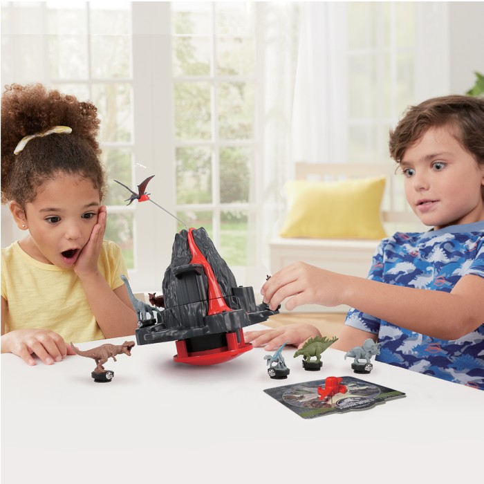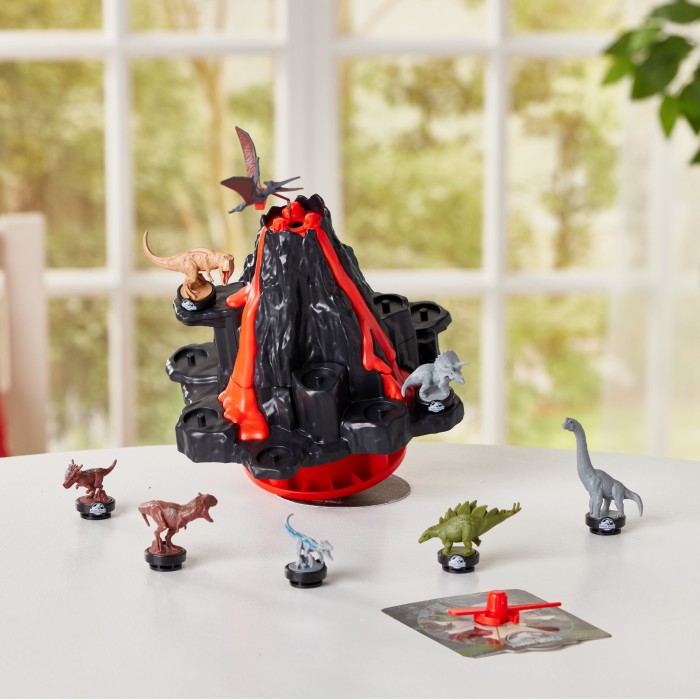 Flytta försiktigt dina dinosaurier från plats till plats. Men var försiktig – om vulkanen får utbrott och kastar bort din dinosaurie är du ute! Ett spännande spel för hela familjen där både skicklighet och tur krävs för att vinna.