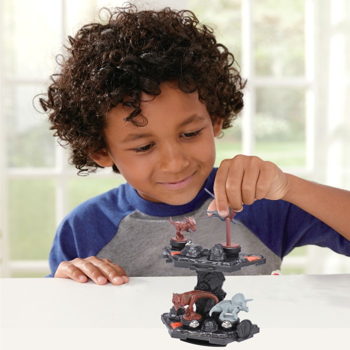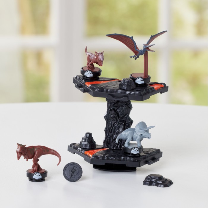 Var försiktig, brickan är inte platt, och den som lyckas hålla sina dinosaurier på plats längst vinner! Spelet innehåller 4 stycken 3D-dinosaurier och kan kopplas ihop med Jurassic World Island Quake (7511) för ännu mer spänning.