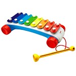 Klassisk xylofon med åtta färgglada tangenter som alla spelar olika toner. Hjulen gör så att barnen kan ta med sig denna och skapa musik vart de än går!