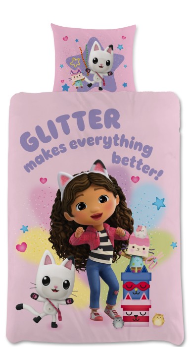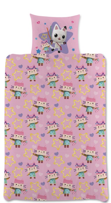 Fint 2-delat påslakanset med favoriterna från Gabby's Dollhouse. Påslakanet har ett avvikande mönster på baksidan.