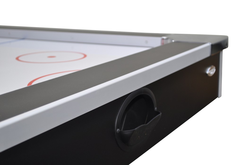 Bordet är utrustat med hörn i metall och har tjockt slagtåligt laminat på sidor och vallar. Utrustad med två kraftfulla fläktar för fartfyllt och exakt spel.