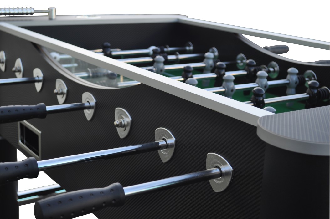 Svart, silver, snyggt, stabilt! Liverpool är ett kraftigt fotbollsbord (fussball) för de bästa matcherna! Den stilrena och moderna designen passar perfekt in i alla hem och tack vare de teleskopiska stängerna gör sig detta bord extra bra i barnens rum! Detta eftersom teleskopiska stänger inte åker ut på motsatt sida av spelbordet under spelets gång och riskerar att skada motståndaren.