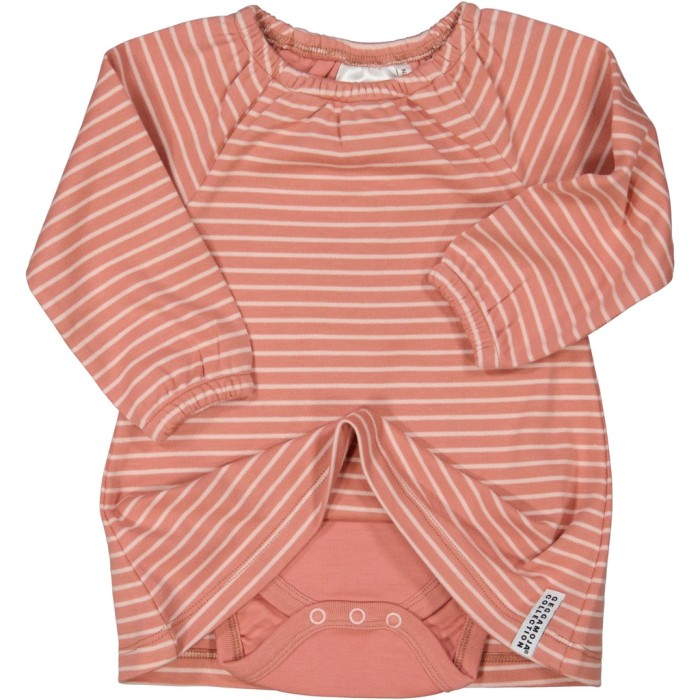 Geggamojas klassiska singoallaklänning i ekologisk bomull. I storlekarna 50/56-74/80 finns en praktisk fastsydd body inuti klänningen.