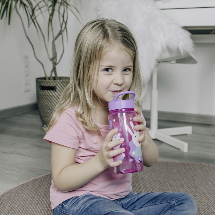 Håll barnen hydrerade på ett roligt sätt med denna vattenflaska med Greta Gris-motiv från Undercover! Flaskan rymmer upp till 500 ml och är perfekt för skola, fritids eller utflykter. Den praktiska designen inkluderar ett sugrör som gör det enkelt för barn att dricka, samt ett tätslutande lock som förhindrar läckage när flaskan inte används.