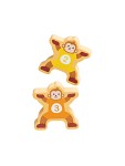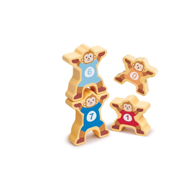 Du kan försöka lägga de numrerade aporna i rätt ordning eller säga en färg högt och få ditt barn att placera aporna i vagnen med samma färg. Detta set innehåller 10 färgglada apor och ett lok med 5 färgade vagnar.