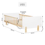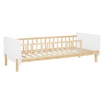 Homestyle Barnsäng 90x200 cm Retrosäng med fallskydd (Vit/Natur)